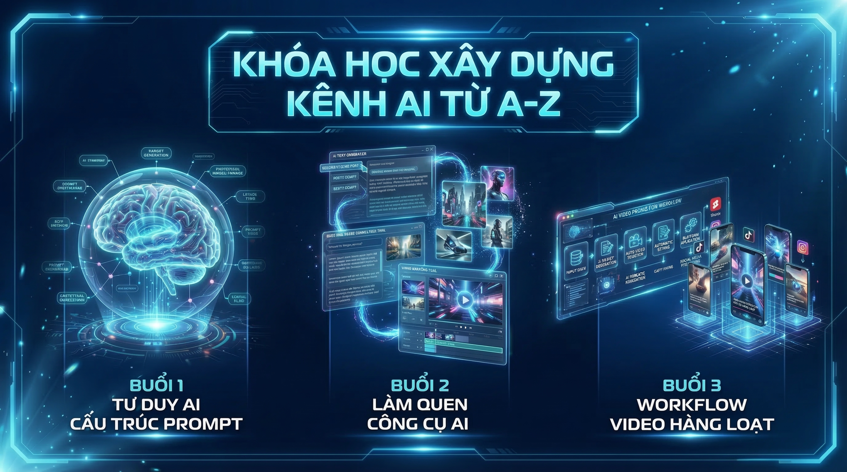 Khóa học “Xây Dựng Kênh AI Từ A–Z” giúp bạn hiểu cách ứng dụng AI vào sản xuất nội dung và thương mại điện tử để tăng tốc xây dựng kênh và tối ưu chi phí vận hành. Chỉ trong 3 buổi học ngắn gọn nhưng thực chiến, bạn sẽ nắm được tư duy sử dụng AI đúng cách, làm quen với các công cụ AI phổ biến và xây dựng workflow tạo video hàng loạt phục vụ bán hàng hoặc phát triển kênh nội dung trên các nền tảng như TikTok, Reels hoặc Shorts. Khóa học phù hợp cho người kinh doanh online, người làm nội dung và những ai muốn tận dụng AI để tạo nội dung nhanh, tiết kiệm chi phí và mở rộng hệ thống kênh tự động.